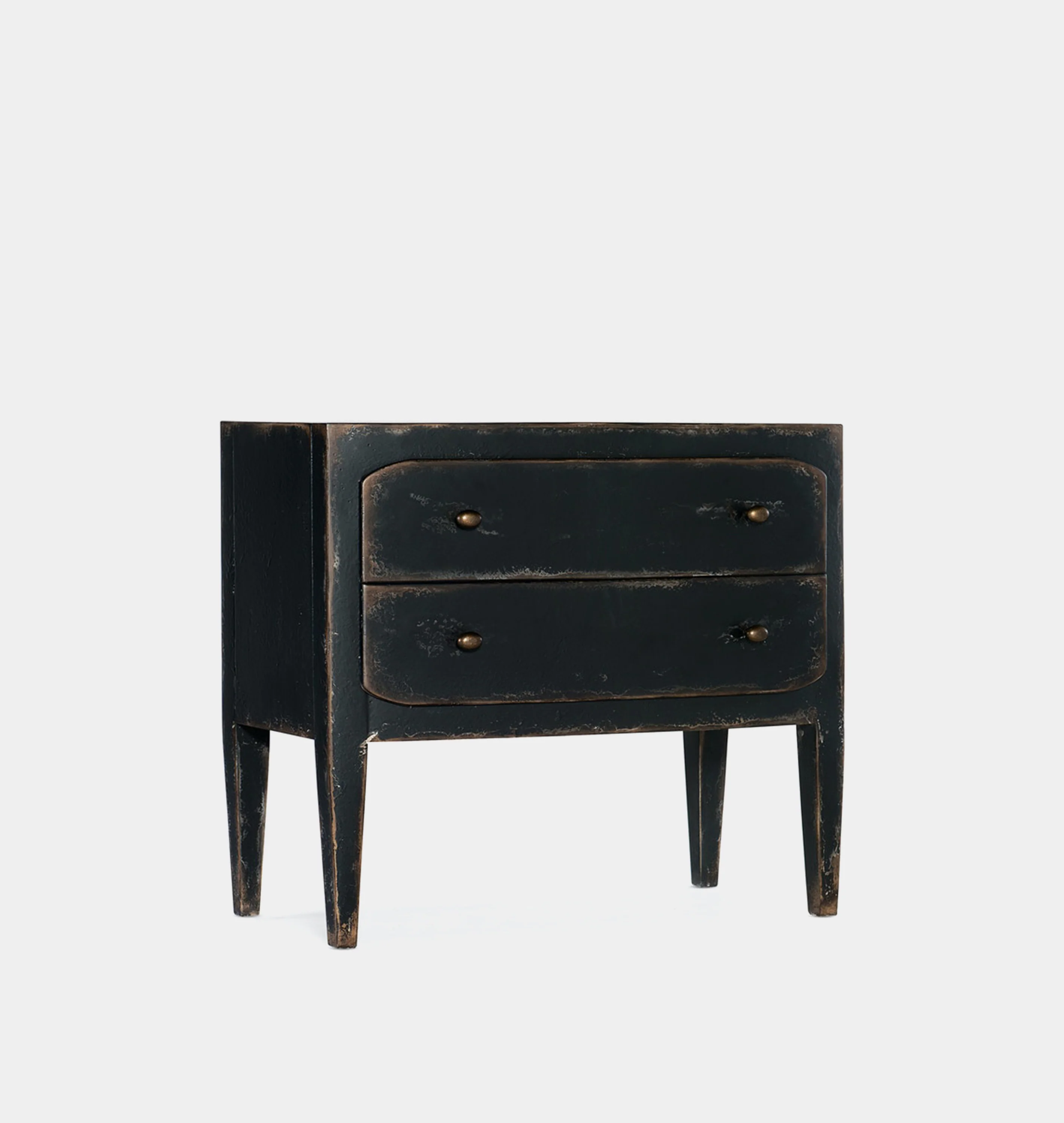 Inspired by the rustic charm of old European farmhouses, the Abisko Nightstand is evocative of a simpler lifestyle. With an exquisite black multi-layer rub-through finish and burnished brass hardware, this piece has been made to look inherently time-worn, as if it too has been passed down through generations. Featuring a solid wood edge top and two spacious drawers, this nightstand has well-considered details such as a drop-in felt liner in the top drawer, a cedar-lined bottom drawer, a cord clip on the back, and a 3-plug outlet with USB port for convenience. Refined yet laid-back, the Abisko will bring a touch of old-world appeal to any bedroom. Explore the Abisko Collection. |