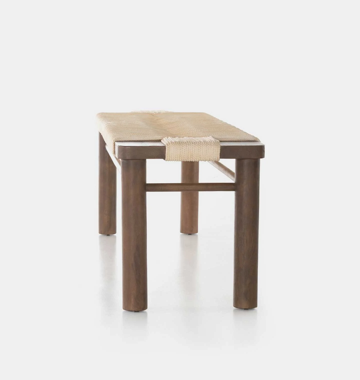 Natural in texture and tone. Russet mahogany framing strikes a low-profile pose as vintage cotton rope weaves for an ultra-organic seat reflective of its Indonesian roots. |