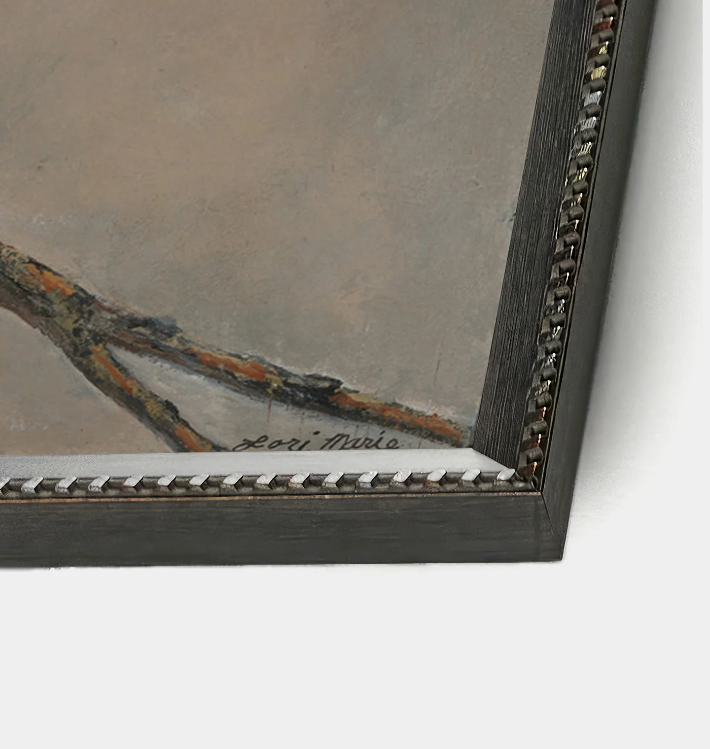 Capture the timeless beauty of nature with Birds by Lori Marie. This framed fine art print depicts a delicate bird perched upon a branch, rendered in textured brush strokes and a sophisticated muted color palette. Exuding sophistication, this fine art print adds a touch of elegance to any space. A native of Southern California and mom to our very own Amber Lewis, landscape painter Lori Marie grew up immersed in nature, frequently camping, traveling to national parks and sketching the peaceful scenery. She draws inspiration from Mother Nature, working with watercolor, oil and acrylic. |