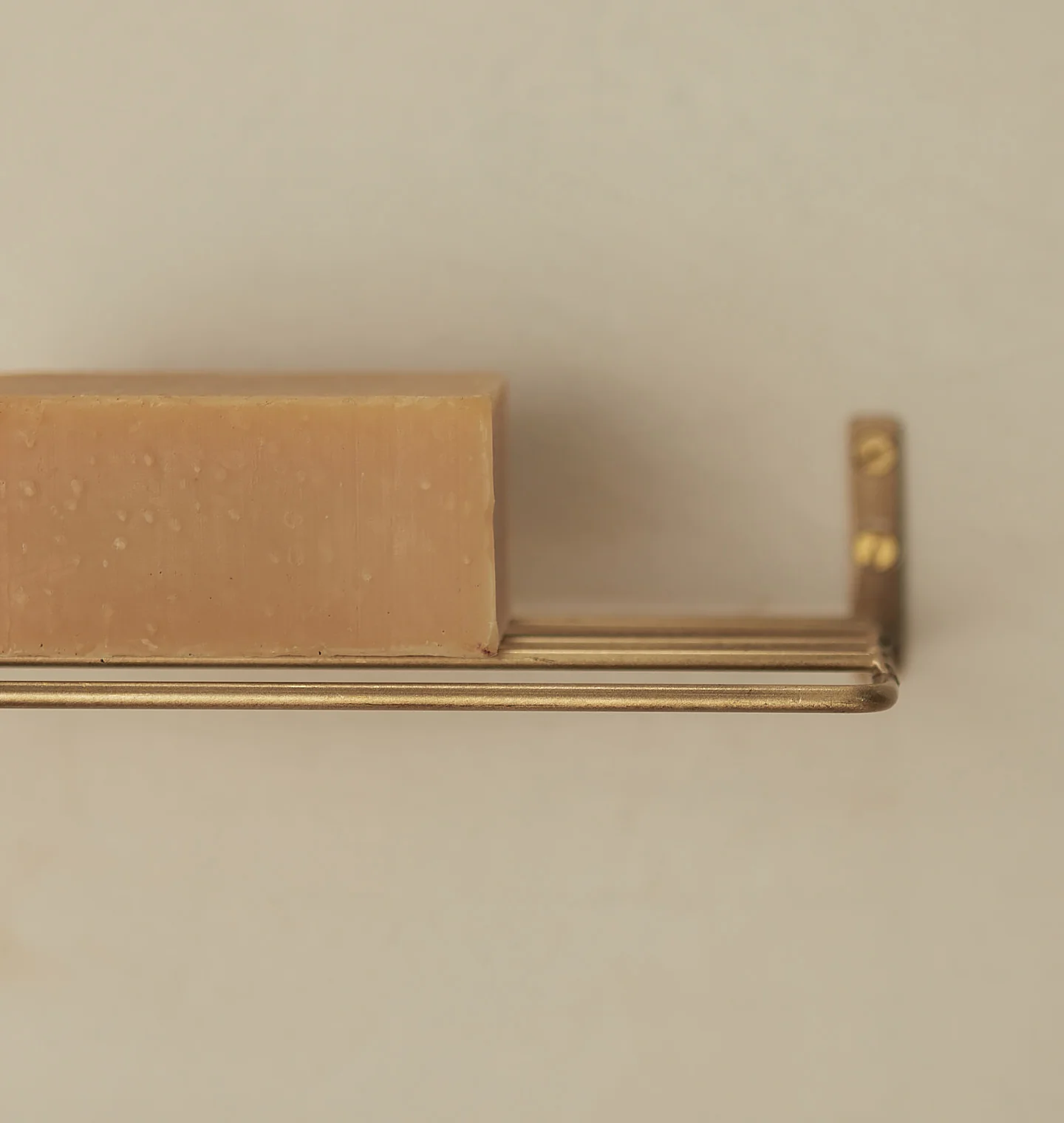 A compact shelf hand-woven in sturdy brass wire. This functional shelf will lend organization to your home in any space, whether you're storing spices or apothecary items. This item is handmade and each shelf will exhibit its own character. Variations will occur in the texture of this handmade item. Mounting screws included. |