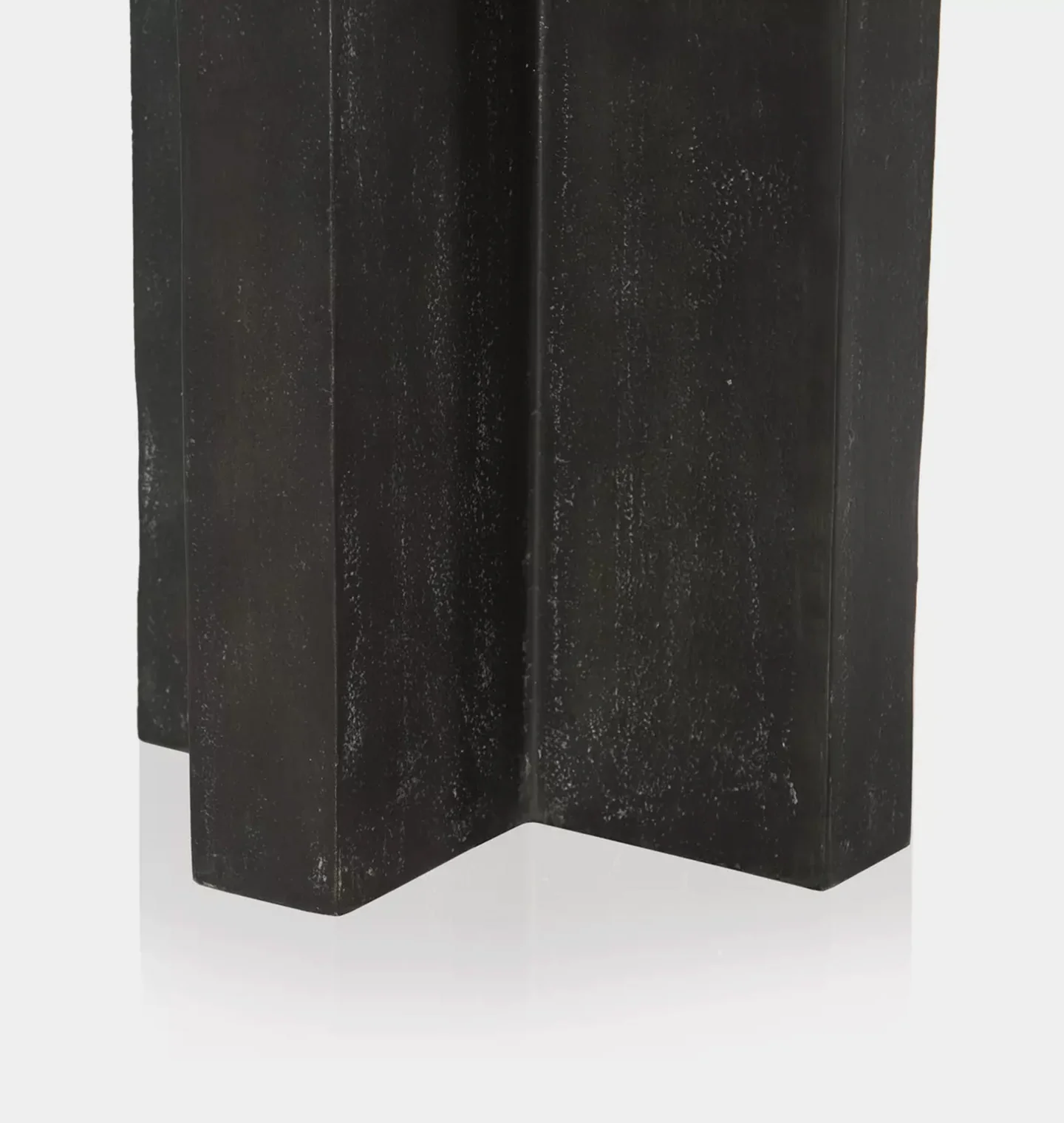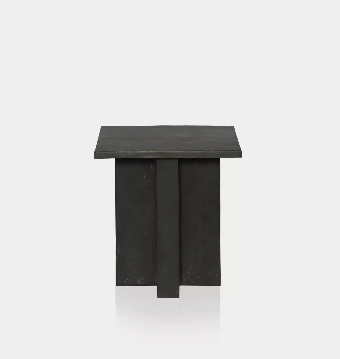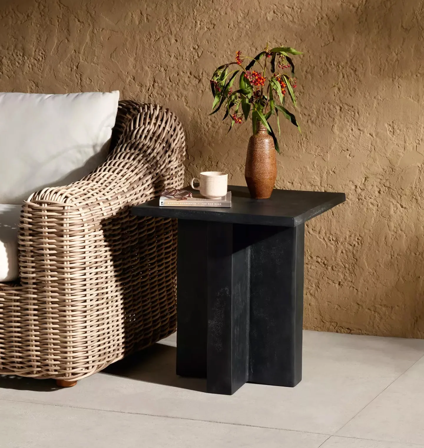Elevate your outdoor space with the Kofi Outdoor End Table. Its modern design and raw black finish add an edgy touch to any patio or garden. Supported by uniquely angular cast aluminum legs, the squared tabletop is both stylish and functional. Bring sophistication and versatility to your outdoor decor with this sleek piece. |