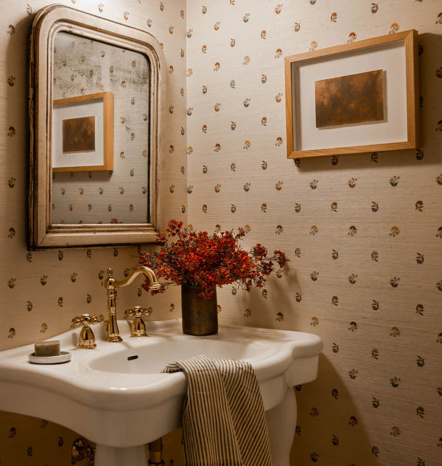 Elegantly adorned with a delicate heritage-inspired floral pattern, the Laila Grasscloth Wallpaper is reminiscent of the timeless beauty found in old English textiles. Hand-designed for storied interior spaces, this subtly textured wallpaper will bring a touch of refinement and sophistication to any room. |