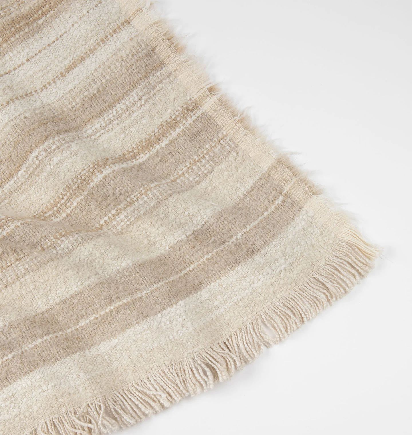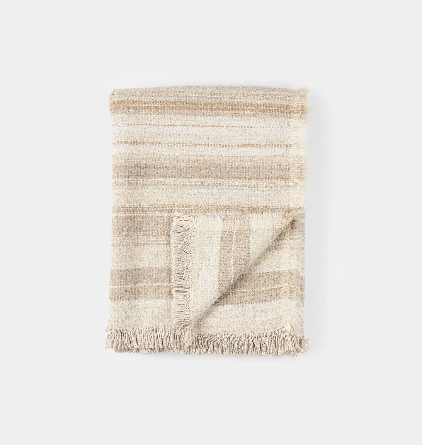 Handmade in Belgium by artisans using traditional weaving techniques, the Nagy Throw Blanket features a beautiful tonal striped pattern finished with delicately fringed ends. A beautiful textural accent for your home, add a touch of cozy warmth to any room by draping over the back of a sofa or the end of a bed. |