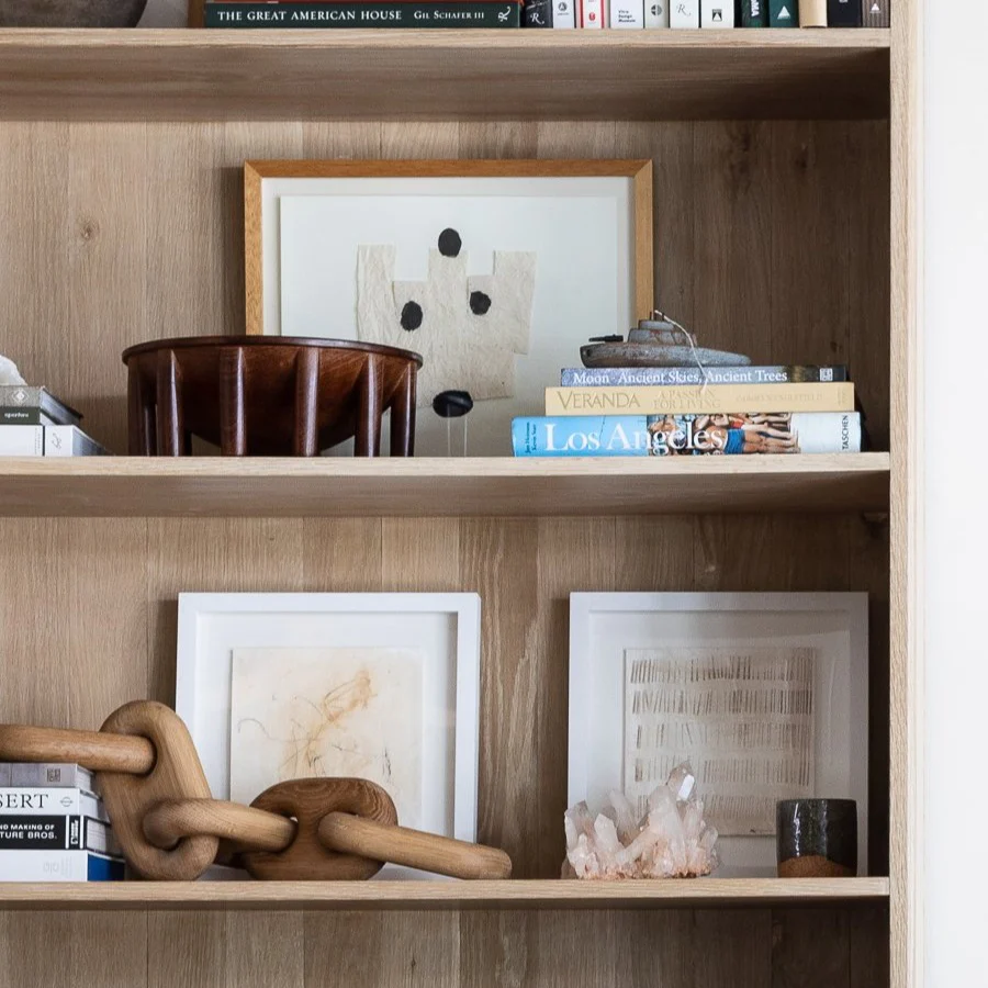 The handmade 5 link oversized wood chain goes perfectly on any shelf or can be put on any surface. The Oversized Wood Link Chain is part of the 'Made by Shoppe' line, designed by Amber Lewis and handmade in Los Angeles. |