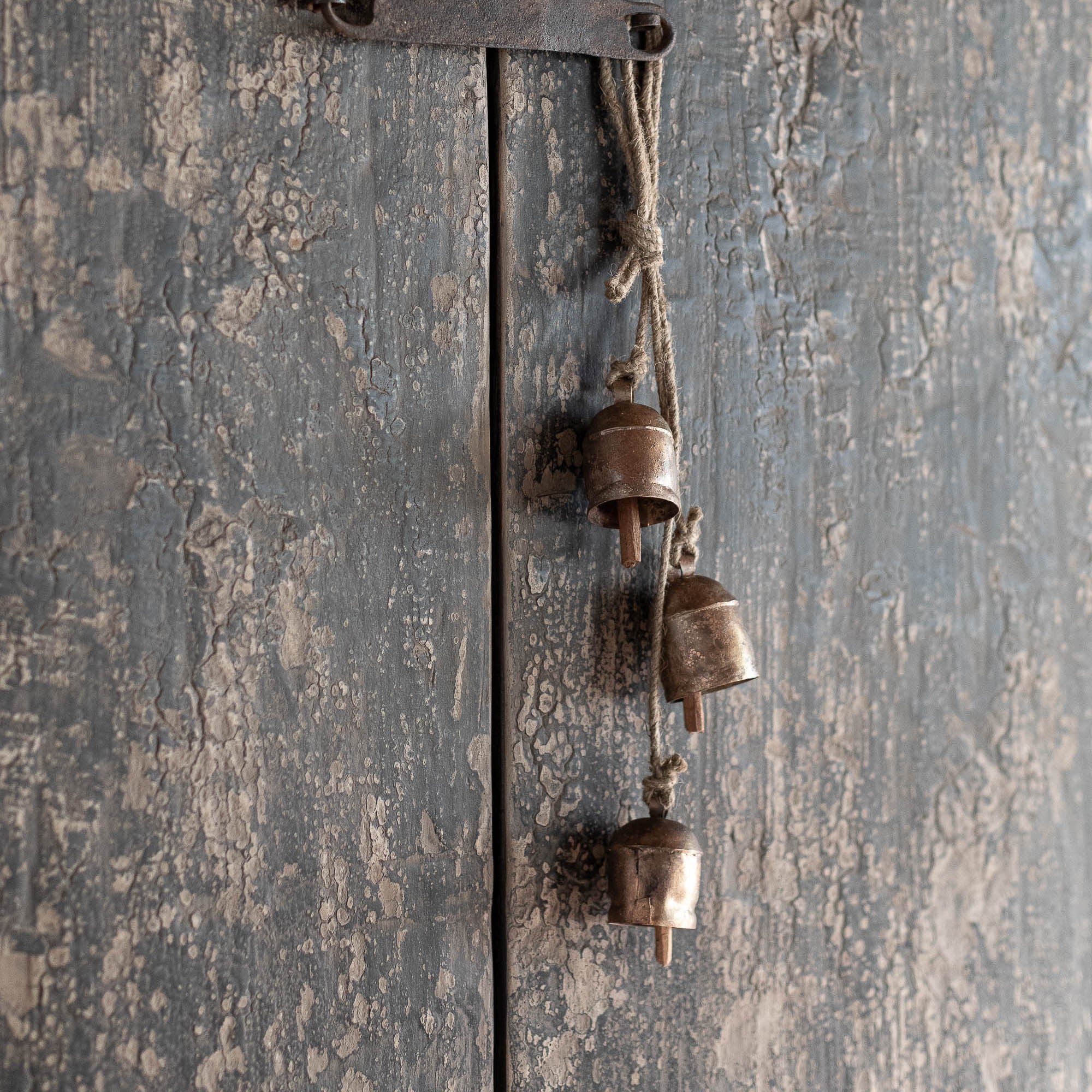 The Rustic Bell Cascades feature three handmade, upcycled iron and copper Indian cowbells. Bell making is a traditional art form passed on for generations. This design is completed with a convenient, sturdy jute hanging loop. |