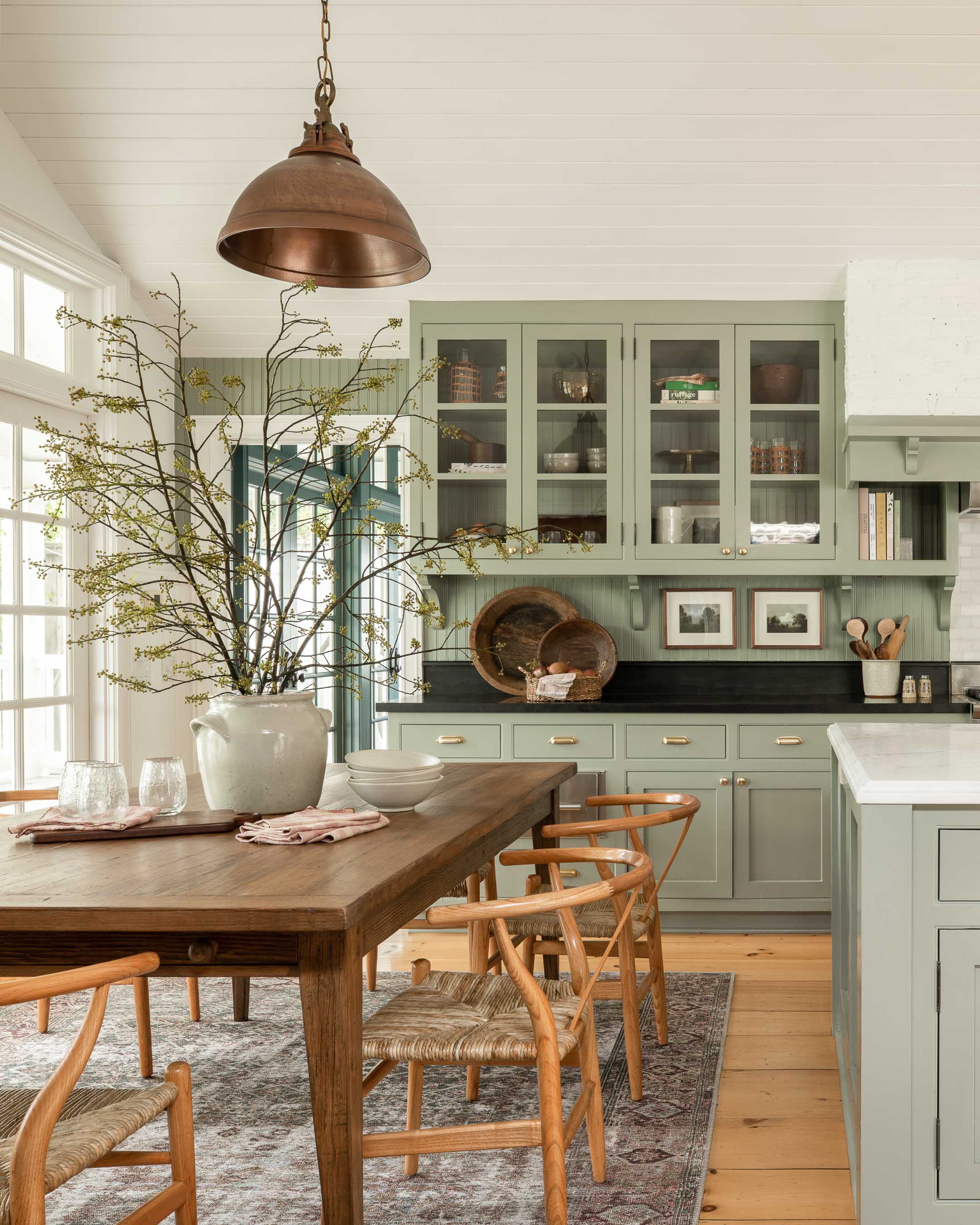 The rich finish on the aluminum body of the Surat Pendant is a hand-finished copper. It complements the antique brass hardware to bring this versatile dome-shaped pendant a feeling of true warmth. |