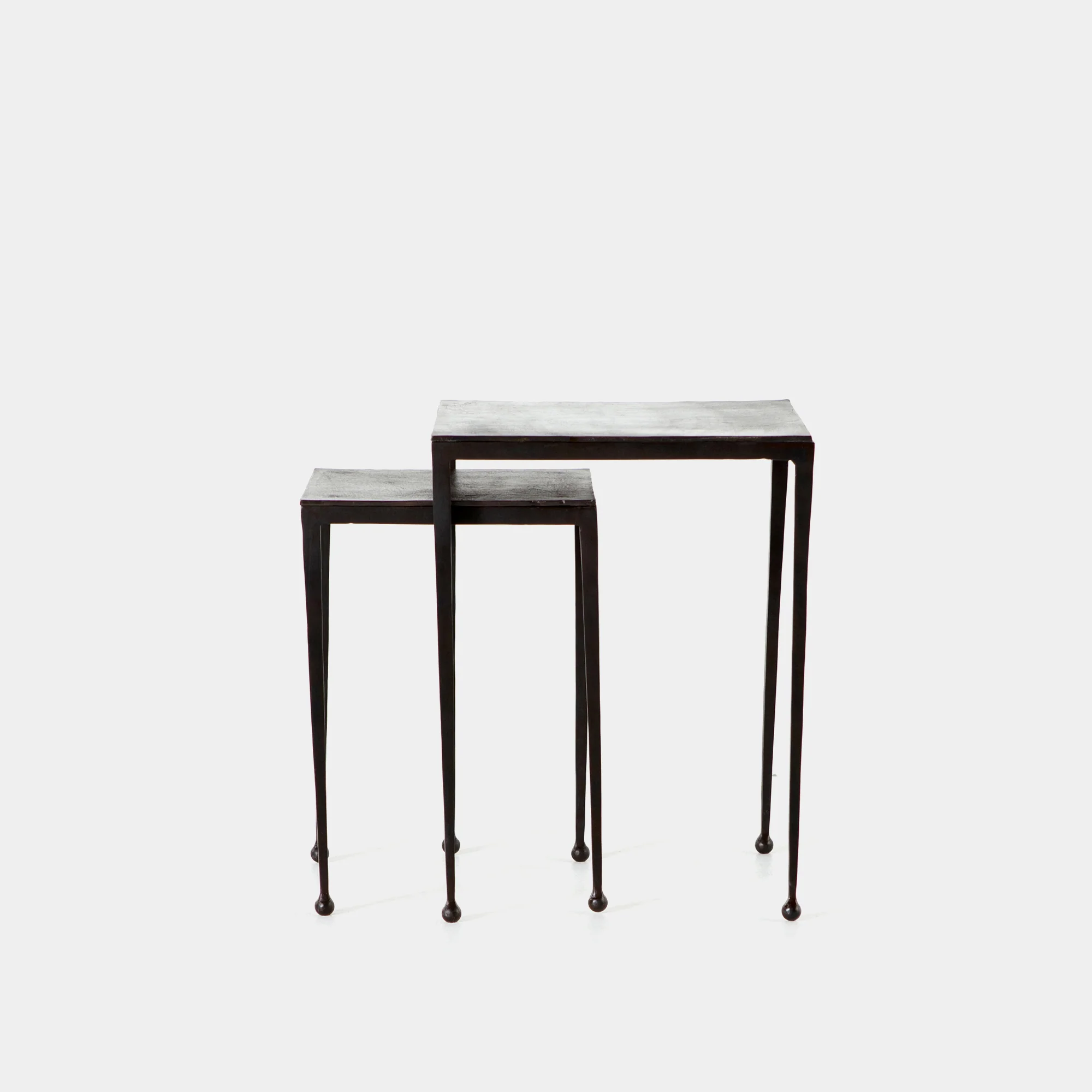 The Varina Nesting End Tables are both elegant and functional providing extra surface area for all your styling needs from the nested table. With a slim profile and tapered legs, these tables have aluminum tops with an antique-like finish in a rust hue. Finished with rounded ball feet—a detail all design lovers will appreciate. |