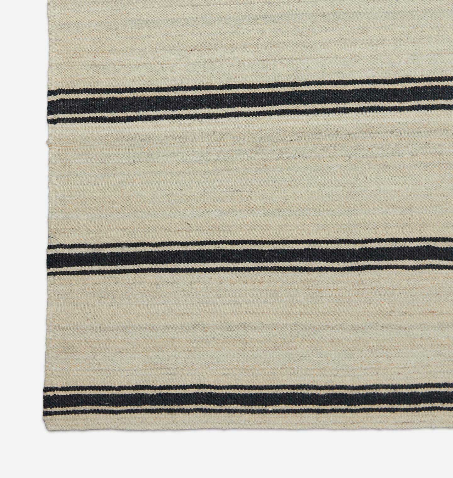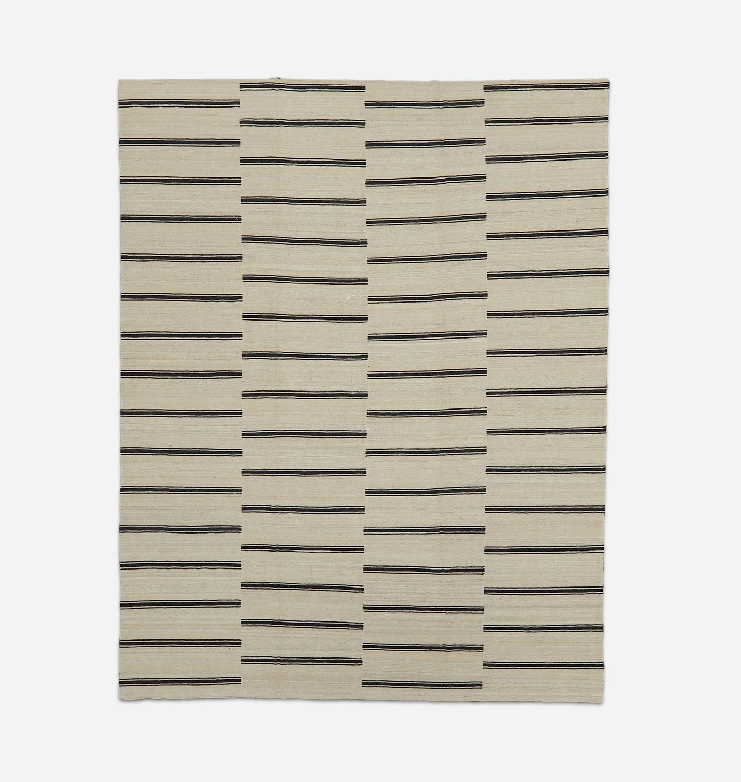 This vintage rug is an heirloom-quality area rug with neutral tones and a bold broken stripe pattern sure to add history, beauty and character to any space it adorns. Please note that as a vintage item this piece may have imperfections, pattern and/or color variations which is considered normal and only adds to the unique characteristics of this one-of-a-kind piece.