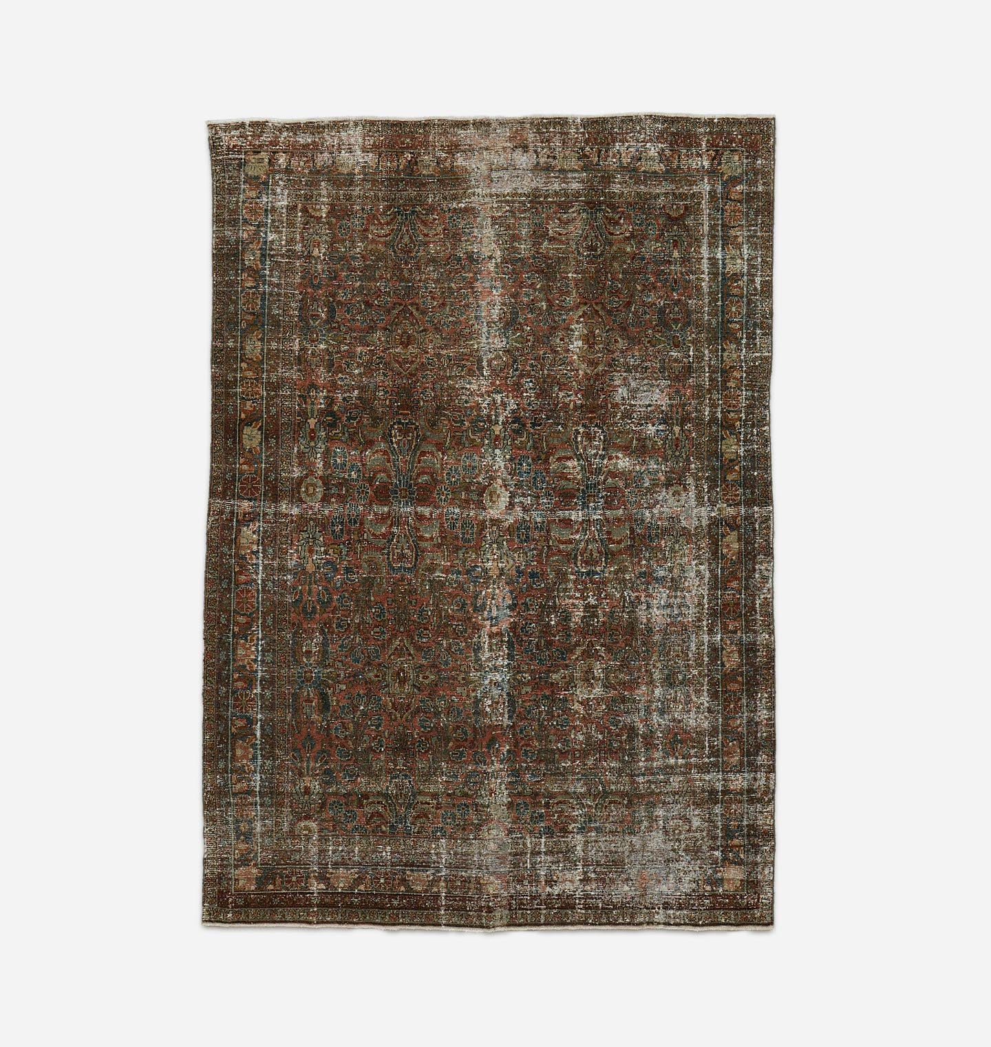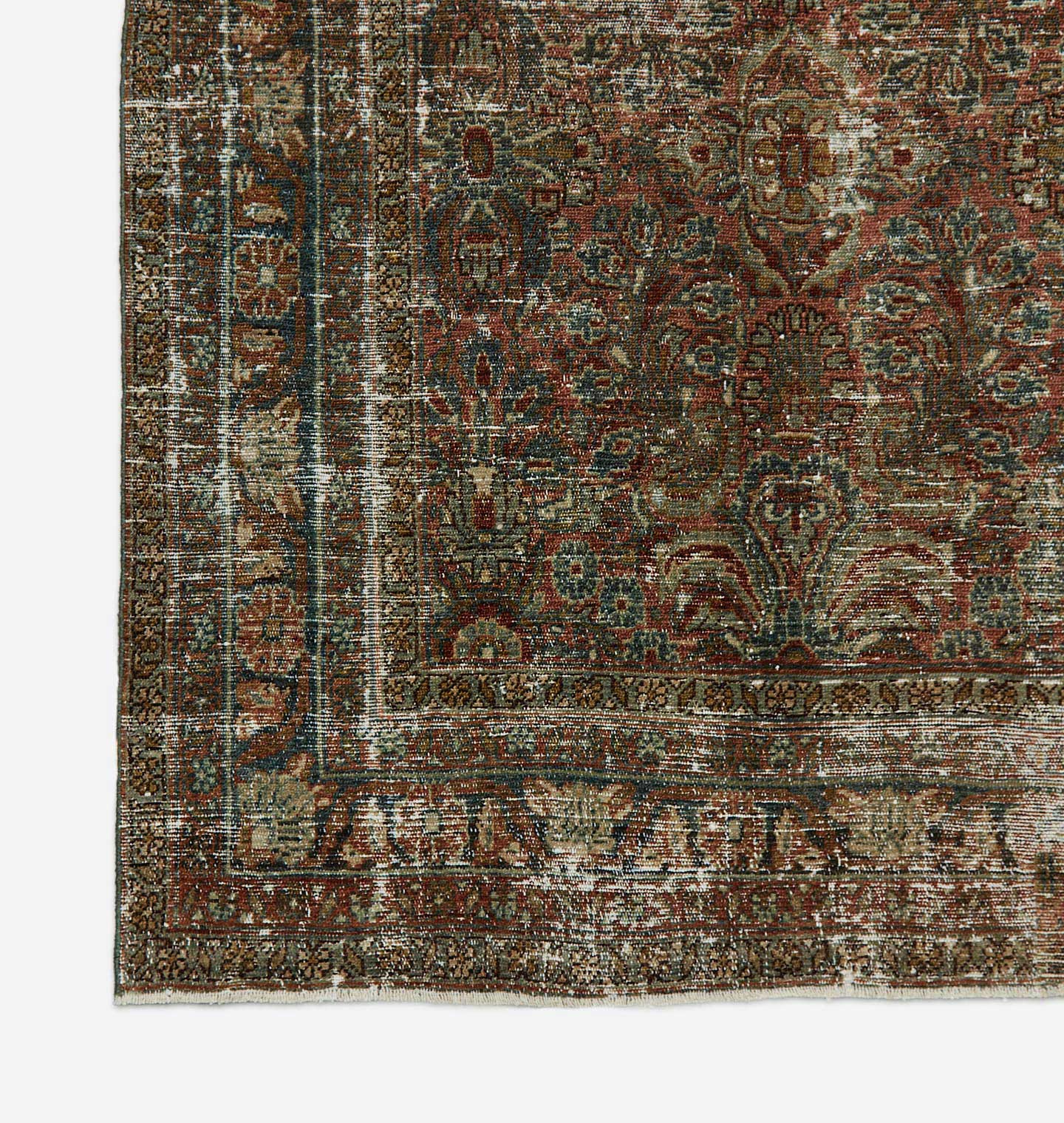 This vintage rug is an heirloom-quality vintage area rug with timeless tones and an intricate pattern sure to add history, beauty and character to any space it adorns. Please note that as a vintage item this piece may have imperfections, pattern and/or color variations which is considered normal and only adds to the unique characteristics of this one-of-a-kind piece.
