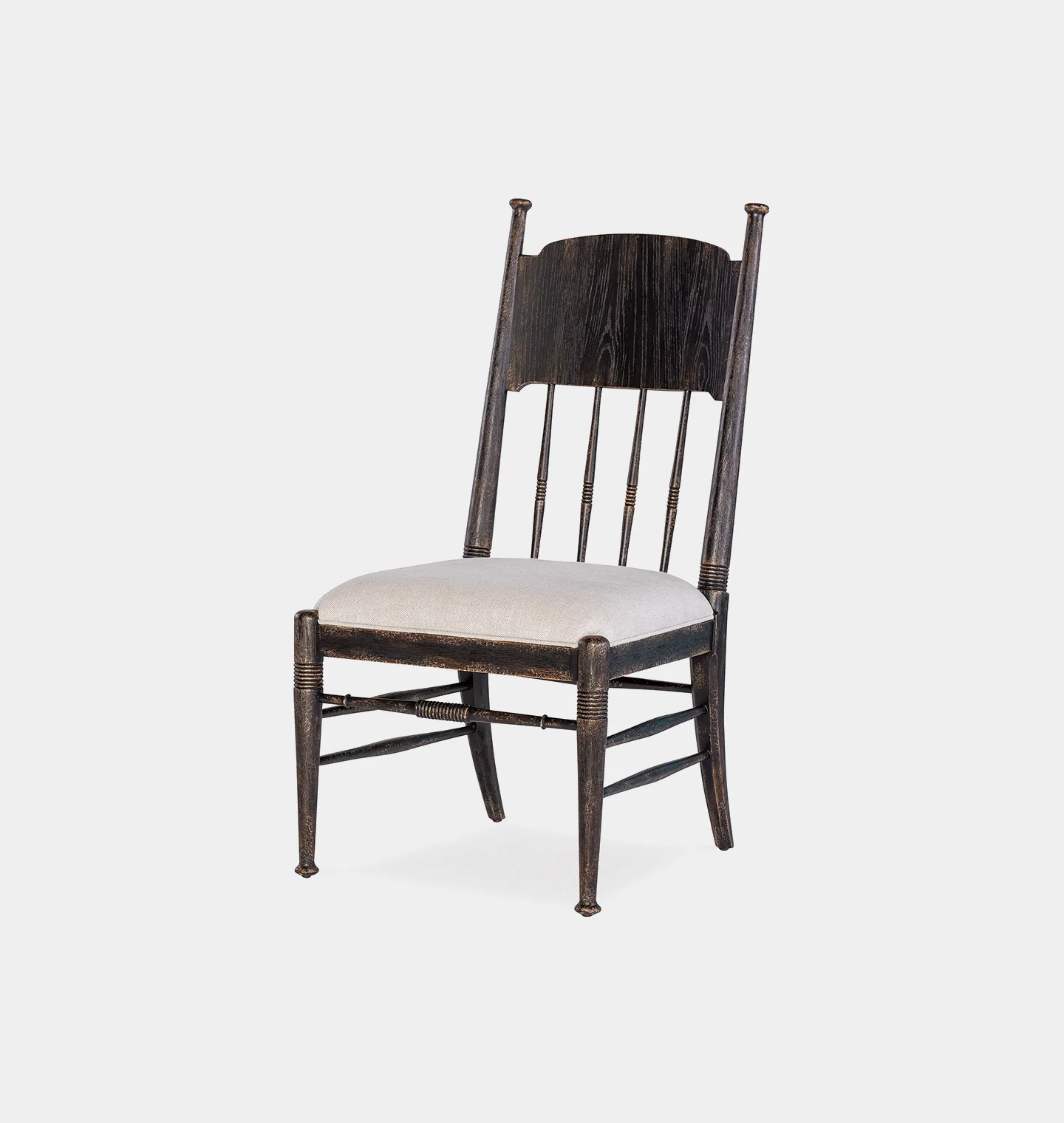 Introduce vintage sophistication to your dining area with the Vittoria Dining Chair. With delicate welt trim, a spindle back, and carved accents, this chair exudes the charm of a cherished heirloom. Its rich, dark oak veneer adds warmth, while performance linen offers a comfortable seat. Available in an armchair and armless dining chair. |